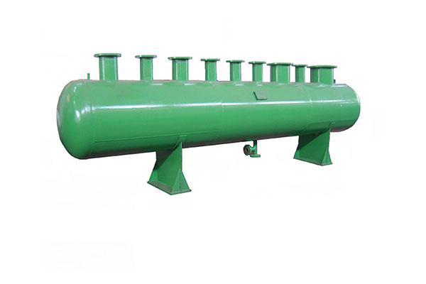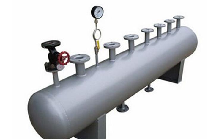 分集水器主要由筒体、封头、接管、固定支架及附件(补强圈、法兰)组成。分集水器设备参数主要有:筒体直径,长度,分水器的进出水口数量,大小,分水器的工作压力。